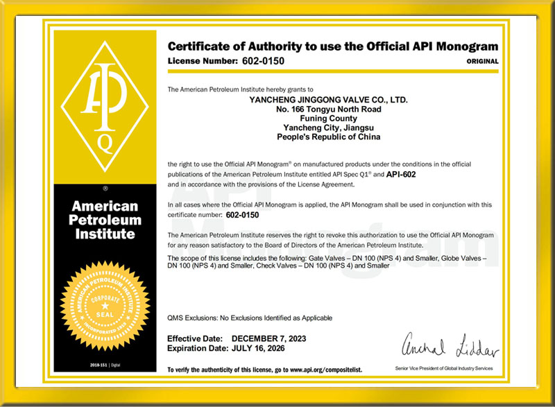 美國石油協(xié)會API認證書-602